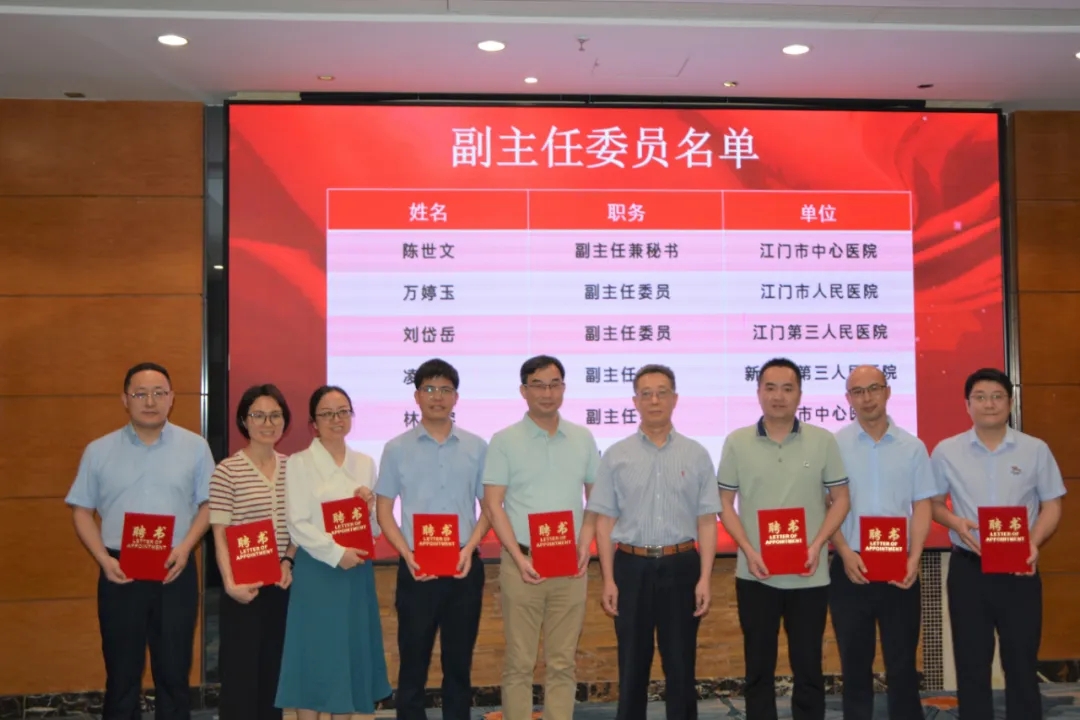 首先,由江门市医学会行为医学与心身医学分会全体委员投票选出新一届主任委员和七名副主任委员,经江门市医学会秘书长黄漫宣读换届批复文件及委员名单,江门市中心医院黄焕章主任医师当选为新一届主任委员,七名副主任委员分别是来自江门市中心医院、江门市人民医院、江门市第二人民医院、江门市第三人民医院、江门新会区第三人民医院、开平市中心医院、鹤山市人民医院的临床专家,聘任廖勇彬教授为本分会名誉主任委员,曹克慎教授、梁先锋教授为本分会顾问委员,由江门市医学会廖勇彬会长、黄焕章主任委员颁发聘书。
