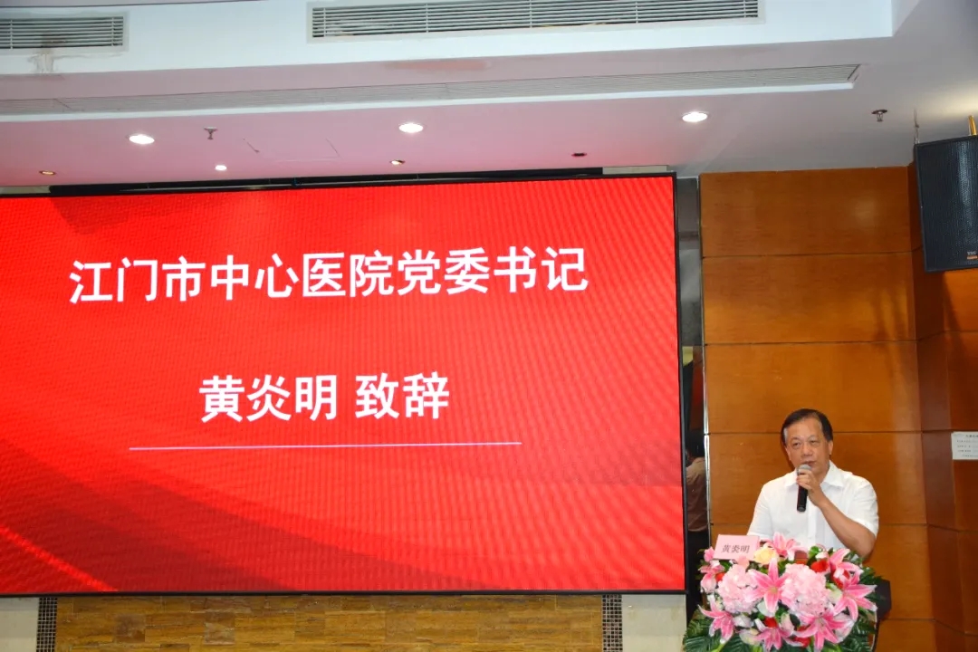 随后,江门市中心医院党委书记黄炎明为本次大会致辞,首先感谢参会的领导、专家及同道们对心身医学学科建设的努力和成效。同时,作为一名呼吸科医生,表示深切感受到行为医学与心身医学是一个蓬勃发展的学科,行为医学与心身医学加强了各临床学科联系和融合,在内外科传统治疗方法外,表现出了其独特的优势和魅力。最后,黄书记表示江门市中心医院会不遗余力地协助和推动心身医学的学科建设和发展,为临床提供更多精准化和个体化的解决方案,为五邑地区的老百姓提供更科学和更优质的医疗服务,并祝贺会议取得圆满成功。