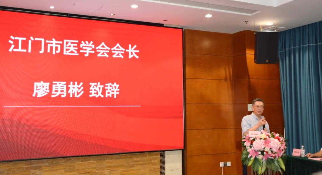 江门市医学会会长廖勇彬为本次大会致辞,他表示,自己作为江门心身医学分会首任主任委员,现任名誉主任委员,见证了江门市医学会行为医学与心身医学分会的成立、成长和发展,希望新一届心身医学分会能迎接新机遇、取得更辉煌的成就,将心身医学理念向各个临床科室普及,传播“心”与“身”相结合的整体治疗理念,抓住未来医学模式发展的契机,推动学科建设和发展;同时向参会的专家、同道及工作人员的奉献精神表示致谢,并祝贺会议取得圆满成功。