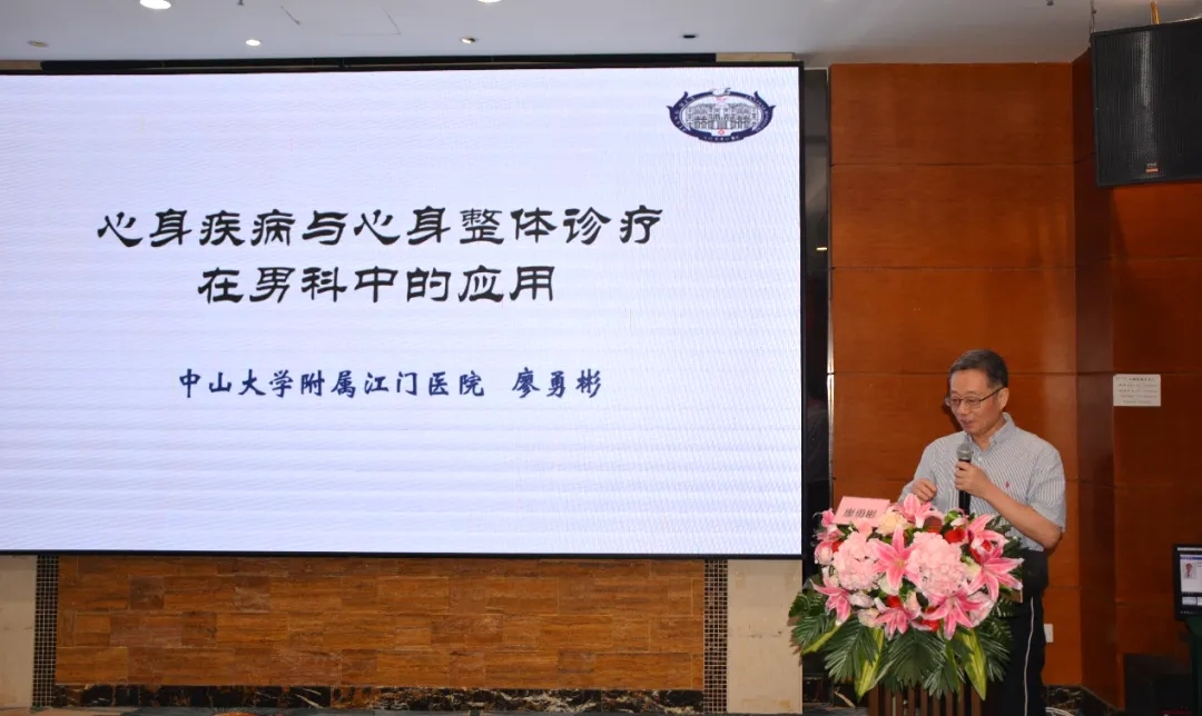 最后,江门市医学会会长、江门市心身医学分会名誉主任委员廖勇彬以《心身疾病与心身整体诊疗在男科中的应用》进行讲解,首先对中国城镇居民心理健康状况、综合医院门诊就诊患者中躯体疾病、心身疾病与MUS比例占比进行分析,结合自身外科诊治经验,向与会者阐述心身医学在日常诊疗工作是如何应用的。