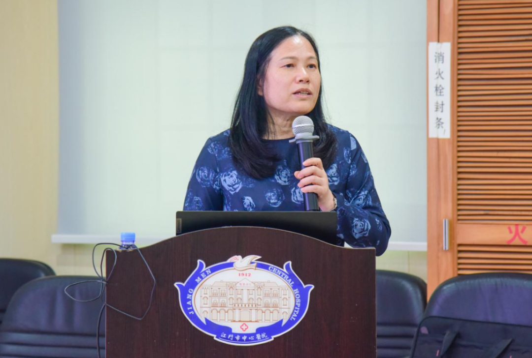 在讲座上,江门市中心医院儿内科主任李超雄、护士长欧仲爱对我院儿科的现状做了简要汇报,包括人员构架、亚专科设置、科室目前的常规业务开展情况等。欧仲爱期待来自广州市妇女儿童医疗中心的专家教授能根据我院儿科的实际情况,给予更多指导。