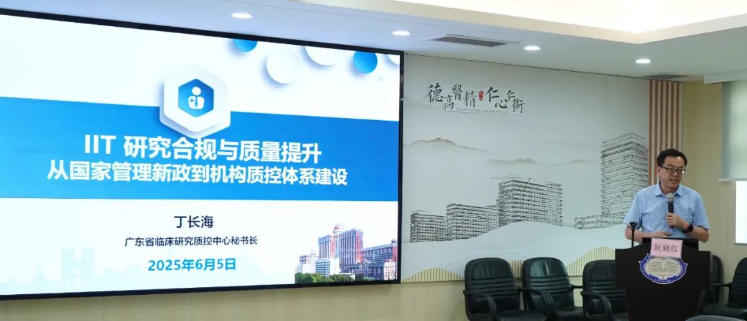 南方医科大学珠江医院临床研究中心执行主任丁长海教授作了题为“IIT研究合规与质量提升—从国家管理新政到机构质控体系建设”的报告。丁教授结合《医疗卫生机构开展研究者发起的临床研究管理办法》等政策文件,强调了立项时需把控科学合理性、伦理合规性和机构适配性审核,质控需构建“事前预防—事中监控—事后整改”全流程管理体系。具体而言,临床研究前要建立风险分级清单、开展专项培训,临床研究中要推行源数据溯源与定期审查、强化严重不良事件响应机制,临床研究后还要做到质控缺陷闭环管理并转化典型案例为SOP。