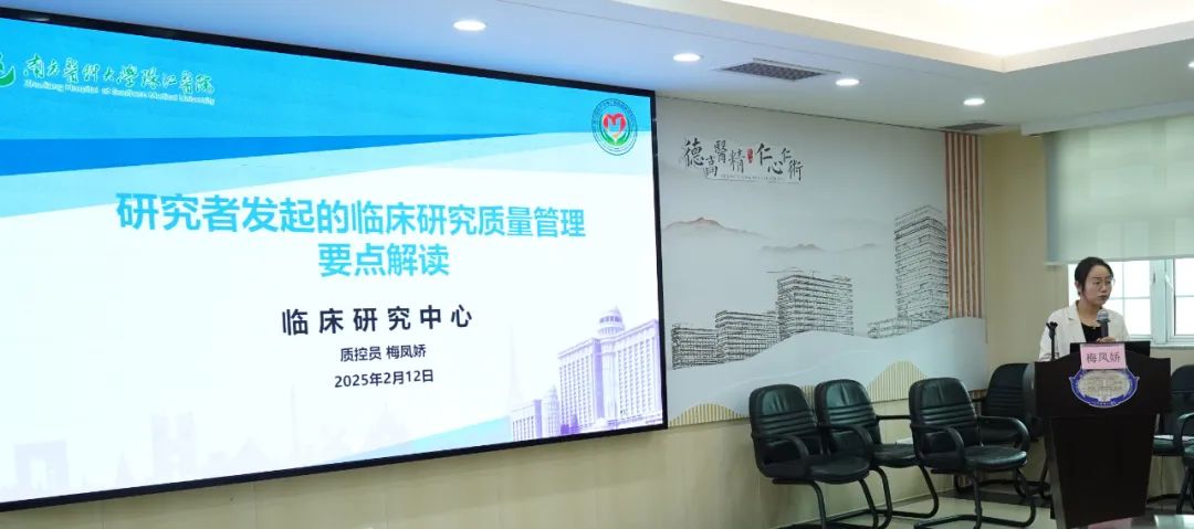 随后,南方医科大学珠江医院临床研究中心梅凤娇老师以“临床研究质量管理要点解读”为题,围绕临床研究质量管理要点,结合实际案例,阐述研究设计、数据管理、伦理审查等关键质控点,并分享了研究者自查自纠的具体方法。梅老师全面细致地传授了临床研究质量控制的关键知识和管理要点,强调了“质控贯穿研究全周期”理念,从立项设计、项目启动、实施过程到结题验收等各个环节,都要反复自查和接受质控。梅老师干货满满的讲座,让医院的科研管理者和临床研究人员受益良多、获益匪浅。