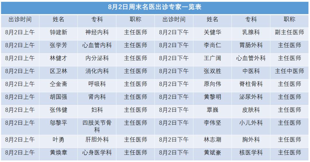 为缓解工作日门诊压力,为患者提供优质、便捷、可及的周末诊疗服务,满足不同群体的就医需求,江门市中心医院计划于8月2日起,逢周六全天开设周末名医门诊!