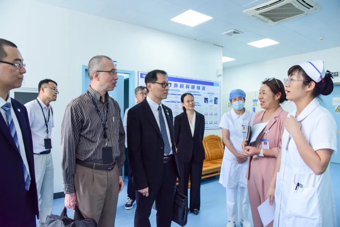 交流会后,香港中文大学(深圳)医学院代表团现场考察了江门市中心医院生殖医学中心、产科实验室、泌尿外科诊疗中心、泌尿外科智慧护理病房、医学研究中心、放射科、医学模拟中心,开启了一场“科技+医疗”的深度探访之旅。通过实地走访,代表团对我院“医教研”协同发展的创新实践给予高度评价:“从临床问题到科学探索,从科研成果转化成临床实践的完整闭环,展现了区域医疗中心的标杆实力!”