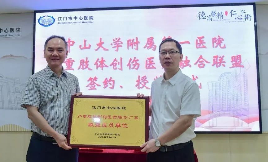此次我院四肢关节骨科加入中山一院严重肢体创伤医防融合联盟,并开展医教研多方面的合作,以及相关学术活动的成功举办,标志着我院在引智聚力、提升核心竞争力方面迈出了坚实步伐。既是我院骨科学科建设的重要里程碑,也是惠及民生的务实之举。未来,我院将以此次合作为契机,持续加强与高层次专家的交流合作,不断提升学科建设水平和医疗服务能力,为区域医疗卫生事业发展注入更多活力,让五邑地区更多患者在家门口能享受到国家级的优质医疗资源,收获健康与希望。