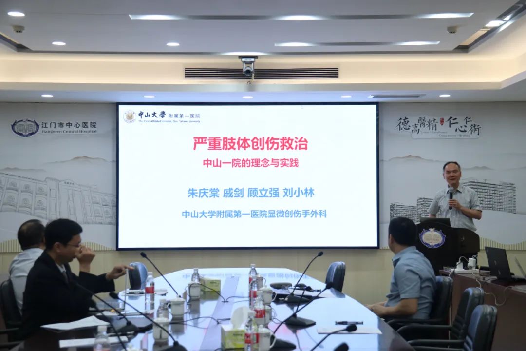 朱庆棠充分肯定了江门市中心医院的发展成绩与区域平台优势。他表示,中山一院显微创伤手外科团队将依托专业特长优势,以医疗协作、学科共建、资源共享为着力点,重点围绕学科规划、科研攻关、技术突破、人才培养及疑难病例诊疗等关键领域,与江门市中心医院开展深度合作。通过经验互通、人才培育,提升江门地区严重肢体创伤领域的医教研一体化水平,突破技术瓶颈,着力解决区域重大疾病诊疗难题,为百姓提供更优质、更高效的医疗服务。