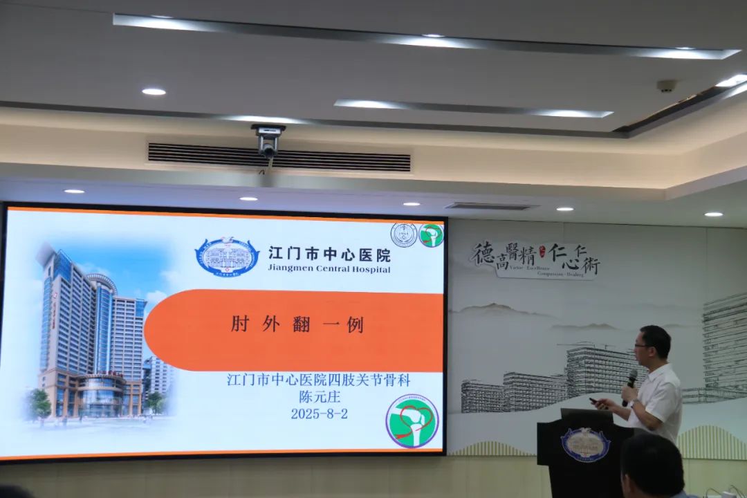 签约仪式后,专家团队开展了一场高水平的学术交流活动。江门市中心医院四肢关节骨科负责人陈元庄首先介绍了本科室的专科建设实践与思考,并分享了肘关节畸形的疑难病例。