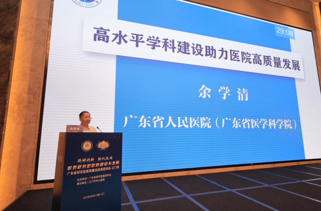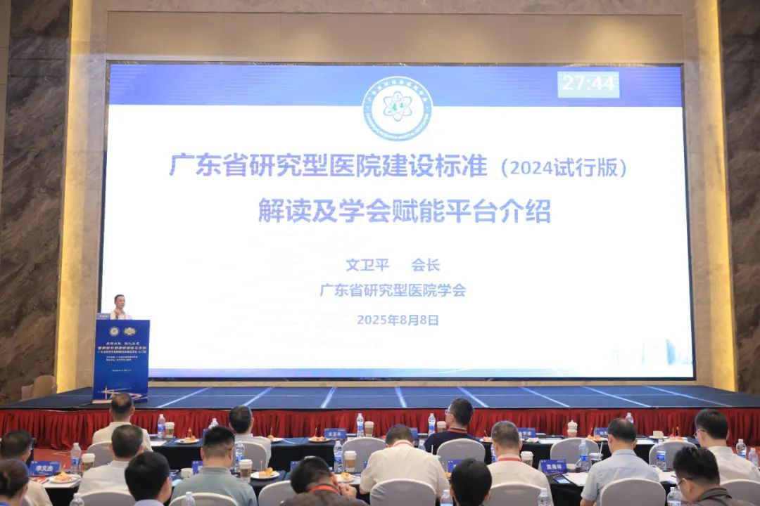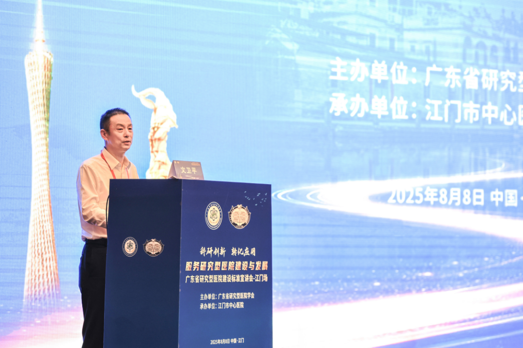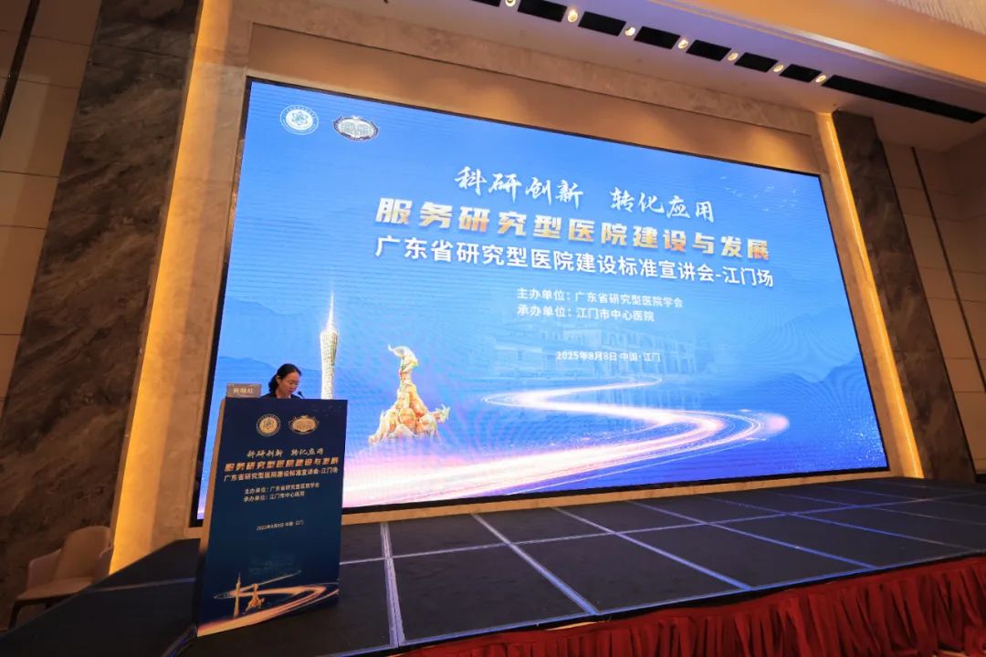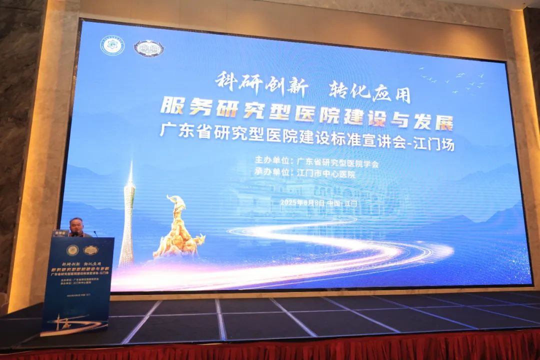 2025年8月8日,由广东省研究型医院学会主办、江门市中心医院承办的“科研创新,转化应用——服务研究型医院建设与发展项目‘广东省研究型医院建设标准’宣讲会-江门场”会议圆满举行。本次会议汇聚了省内外医疗领域知名医院管理者、专家学者,共同探讨研究型医院建设的创新路径与经验,是推动医疗、教学和科研深度融合,带动公立医院高质量发展的一次生动实践。