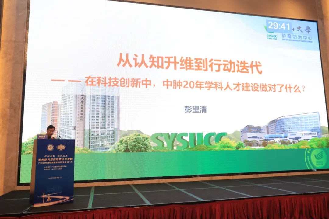第三部分由江门市人民医院党委副书记、院长曹克慎主持,中山大学肿瘤防治中心副院长彭望清作《科技创新中人才引育引用的中肿实践》主题汇报,彭望清介绍了中山大学肿瘤防治中心在人才战略方面的成功经验,从人才引进机制、培养模式到激励政策等多维度展开,分享了在推动科研创新和人才队伍建设方面的有效举措,为其他医院提供了可借鉴的范本。