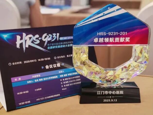 在创新药物与医疗技术研发的道路上,临床试验是转化医学成果、惠及广大患者的关键桥梁;其每一次的突破,都离不开申办方与医疗机构紧密协作、携手推进。2025年9月13日,江门市中心医院凭借卓越的科研组织能力、高效的项目执行力以及突出的临床研究质量,荣获申办方颁发的“卓越领航贡献奖”。