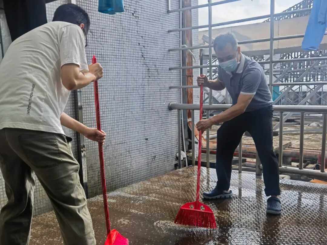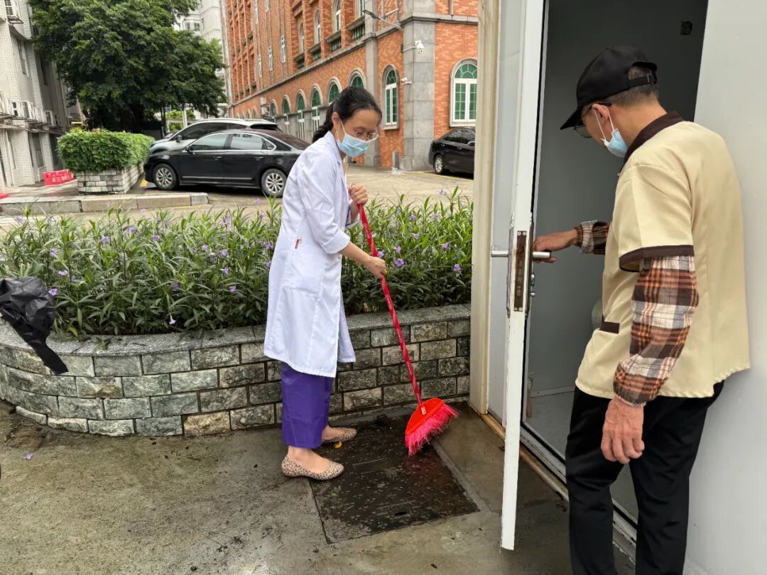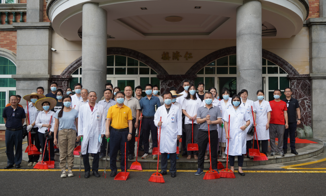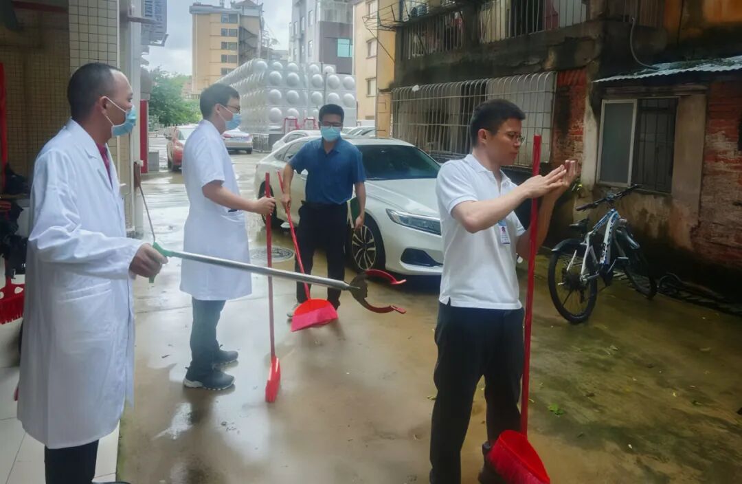 江门市中心医院党委书记黄炎明,党委副书记、院长阮晓红,党委副书记张品,党委委员、副院长周卫华,党委委员、纪委书记麦少娟,党委委员、副院长赵景林分别带领各职能科室和相关部门负责人在全院范围内开展全覆盖式防蚊灭蚊、环境清理和清积水的爱国卫生运动。