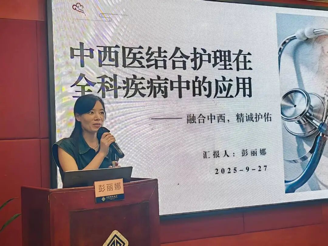 彭丽娜主管护师带来了《中西结合的护理模式在全科医疗中的应用》的分享,她结合实际案例,阐述了中西结合护理模式在全科医疗中的独特优势和实际应用效果,为护理工作提供了新的视角。