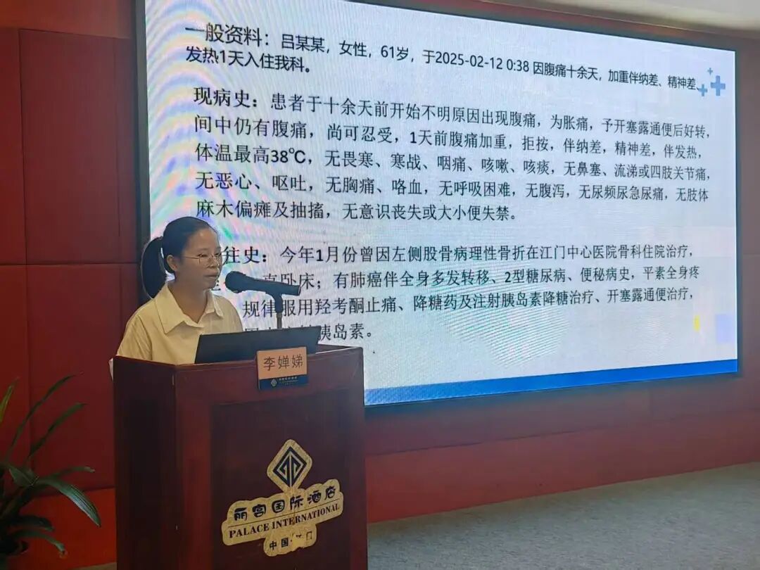 最后,江门市人民医院全科医学科的李婵娣医生分享了一个关于老年危重多病共存患者的临床案例,深入分析了病情进展、治疗计划及其成效。同时,她提到全科医学是全生命周期的照顾,终末期患者的管理、临终关怀是重要的内容之一,使大家对全科医学的内涵有更深刻的理解。