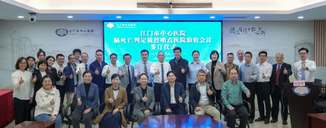 验收结束后,国家脑损伤质量控制评价中心广东省分中心潘速跃常务主任与江门市中心医院党委副书记、院长阮晓红共同签署《脑死亡判定质控协议书》,并授予我院“脑死亡判定质控哨点医院”证书。