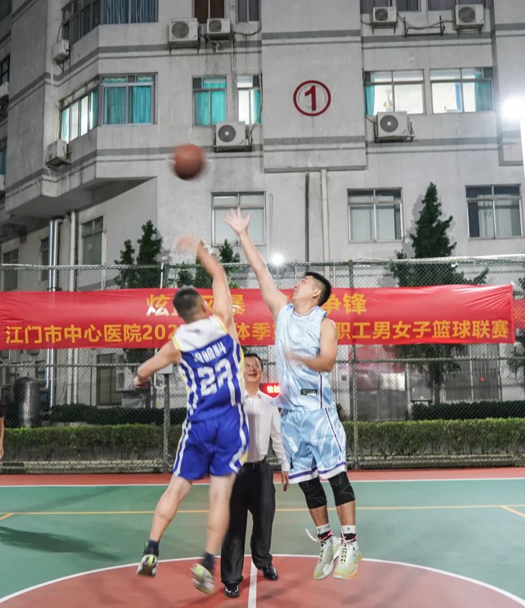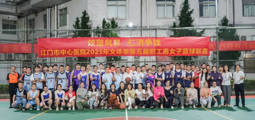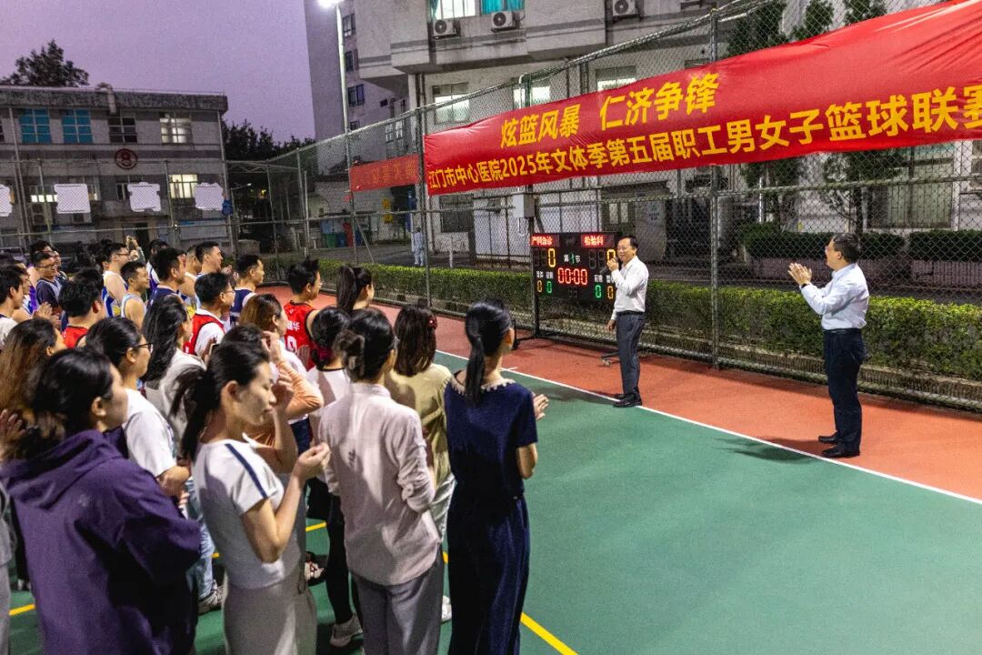 10月31日,江门市中心医院新球场内人声鼎沸、气氛热烈,“炫篮风暴、仁济争锋”2025年文体季第五届职工男女子篮球联赛在此正式拉开帷幕。医院党委书记黄炎明、党委副书记张品与14支参赛队伍的队员们、啦啦队及围观患者共同见证这一热血时刻。