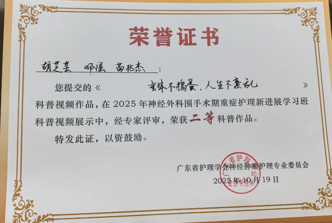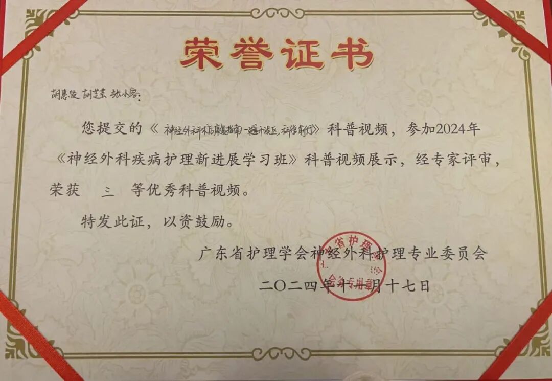 在领导的大力支持和悉心引领下,我开始在营养领域深入学习。当别人觉得辛苦想要放弃时,我想到的是母亲康复路上的点点滴滴,那些艰辛与付出,与母亲的生命相比,真的不算什么。于是,我咬紧牙关,坚持了下来。终于,在2024年,我成功考取了营养师证和营养指导员资格。同年,我还外出攻读专科护士,不断提升自己的专业素养。