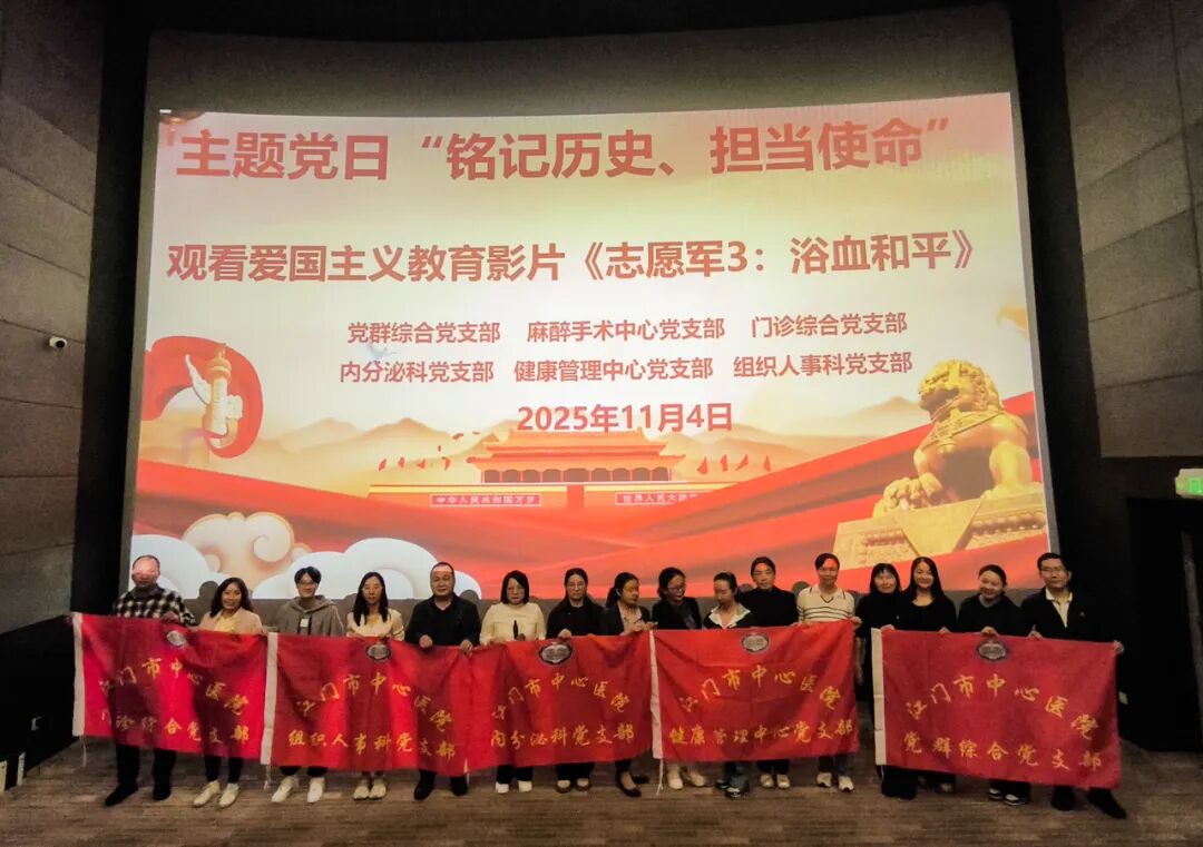 为厚植爱国主义精神,传承红色基因,强化使命担当。日前,江门市中心医院党群综合党支部联合麻醉手术中心党支部、门诊综合党支部、内分泌科党支部、健康管理中心党支部、组织人事科党支部和机关综合团支部等支部集体观看了爱国主义电影《志愿军3:浴血和平》。