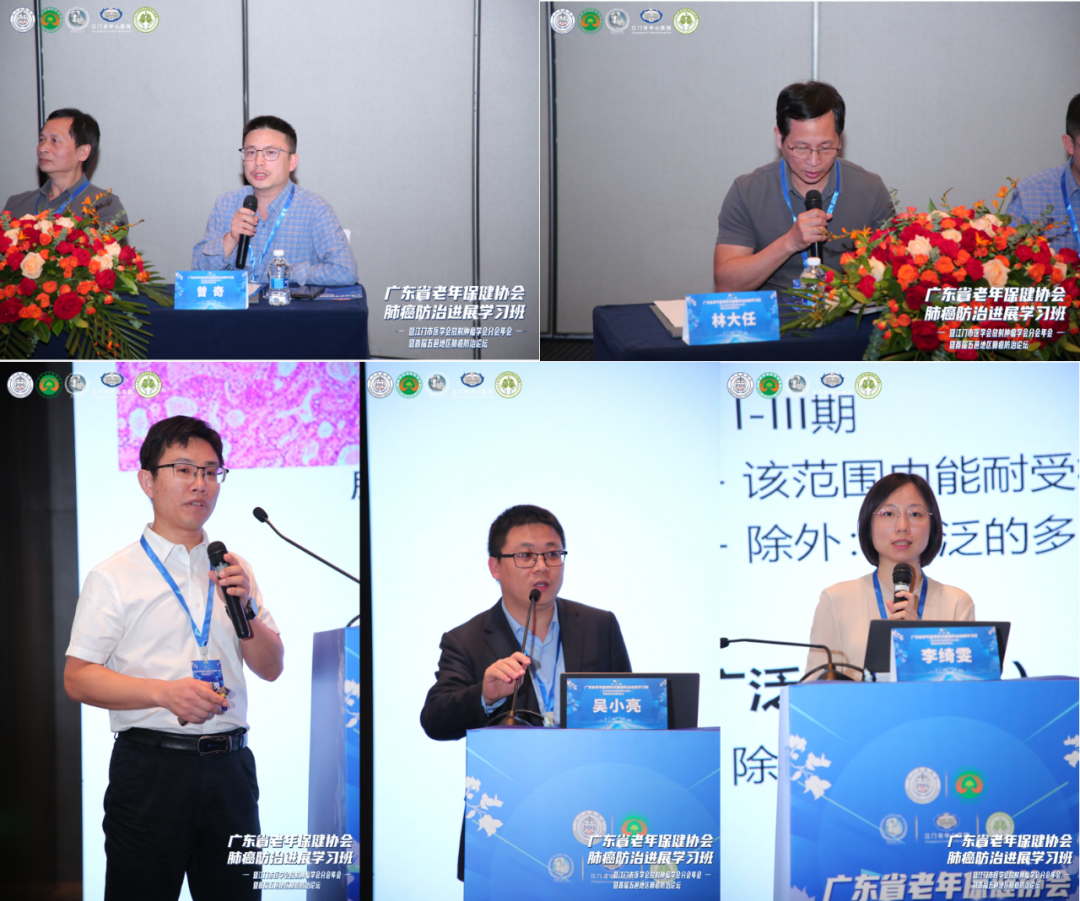 第二部分讨论环节由开平市中心医院肿瘤外科主任方子文主持。恩平市人民医院外二科副主任陈家露、江门市新会区人民医院心胸外科主治医师陈贤新、台山市人民医院胸心外科主任黄少先、江门市中心医院胸外科主任医师黄文海、开平市中心医院呼吸科主治医师罗青、江门市人民医院胸外科副主任医师吕庆帮、台山市人民医院肿瘤内科副主任许金凤、开平市中医院大外科主任杨崧、台山市中医院主治医师姚树雄就肺癌手术、放疗与早筛的临床应用专题开展探讨。