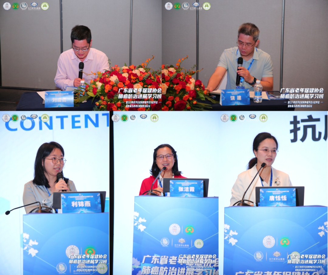 第二部分讨论环节由江门市中心医院肿瘤中心肺部肿瘤病区主任医师林大任主持。鹤山市人民医院呼吸与危重症医学科主任陆丽燕,恩平市人民医院肿瘤科主治医师陈政,江门市五邑中医院肿瘤科副主任丁可,江门市中心医院呼吸与危重症医学科副主任医师关婉贤、肿瘤中心肺部肿瘤病区主治医师彭绮华、头颈肿瘤科主任医师谭洁媚,江门市人民医院呼吸与危重症医学科主任医师李世泽,鹤山市人民医院肿瘤内科主任潘嘉问围绕小细胞肺癌的分子分型、放化疗进展等系列热点问题进行了交流。