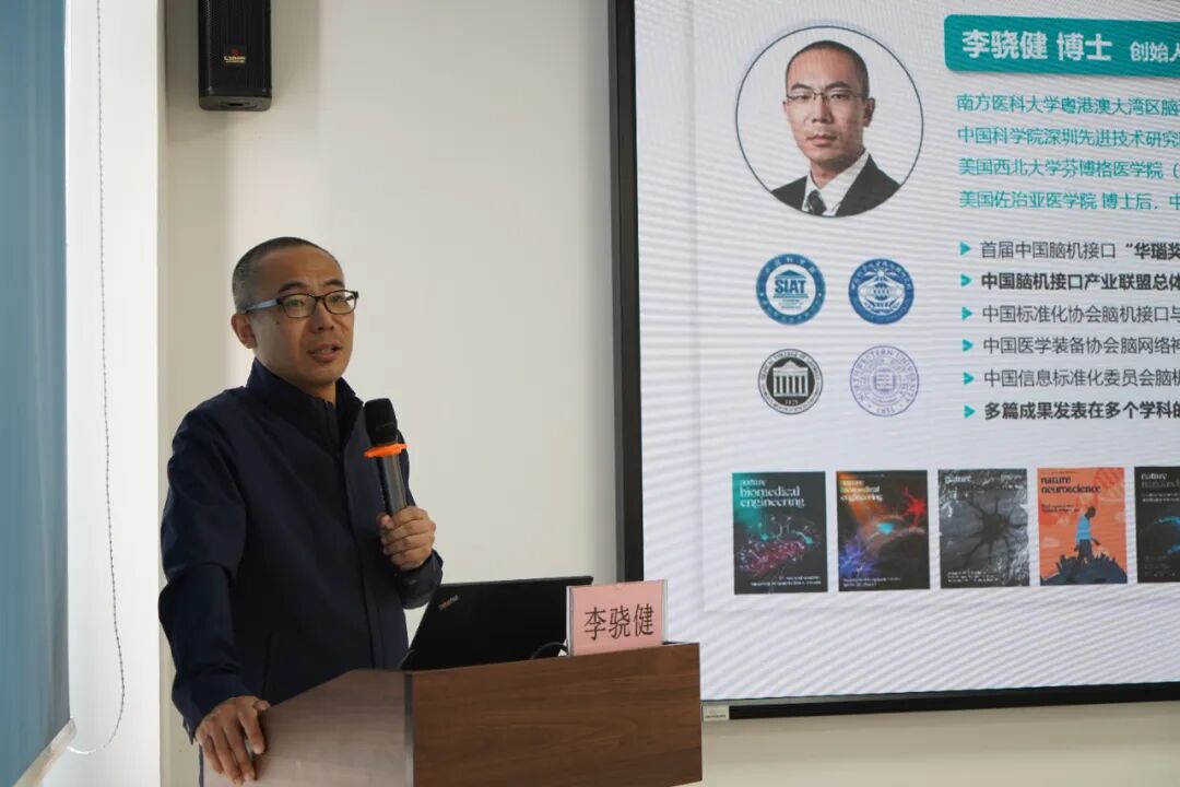 活动还设置了学术交流环节,李骁健博士以“脑机接口的医疗之路”为主题,深度解析了该技术在医疗领域的应用实践与探索历程;江门市中心医院神经外科主任古机泳、康复医学科主任胡荣亮分别分享了神经外科应用脑机接口技术实践病例及脑机接口在康复领域的应用进展,为现场嘉宾带来前沿学术盛宴。