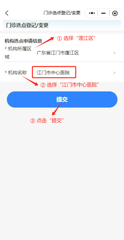 答:职工医保参保人在选定一家一级及以下定点医疗机构基础上,可在二级或三级定点医疗机构中再选定一家;城乡居民医保参保人只可在一级及以下定点医疗机构或我市儿童专科定点医疗机构中选定一家。【注】凡参与我市职工医保参保人,均可以选定江门市中心医院为二级及以上定点医疗机构。答:江门市普通门诊定点医疗机构名单(定期更新)公布在江门市医疗保障局官方网站,或可扫描下方二维码查看。 撰稿:梁新玲