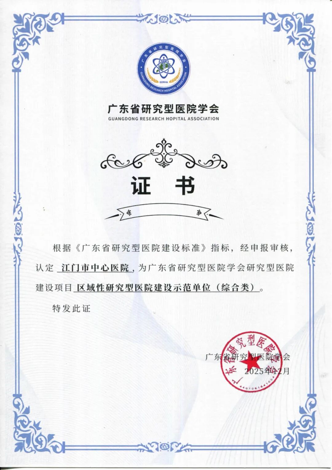接下来,我院将严格对照高水平研究型医院建设标准,进一步整合医院现有的科研资源、强化平台服务能力、深化跨学科协同创新,持续提升科研创新质量与临床转化效率,为广东省医疗卫生事业高质量发展贡献坚实的江门力量。