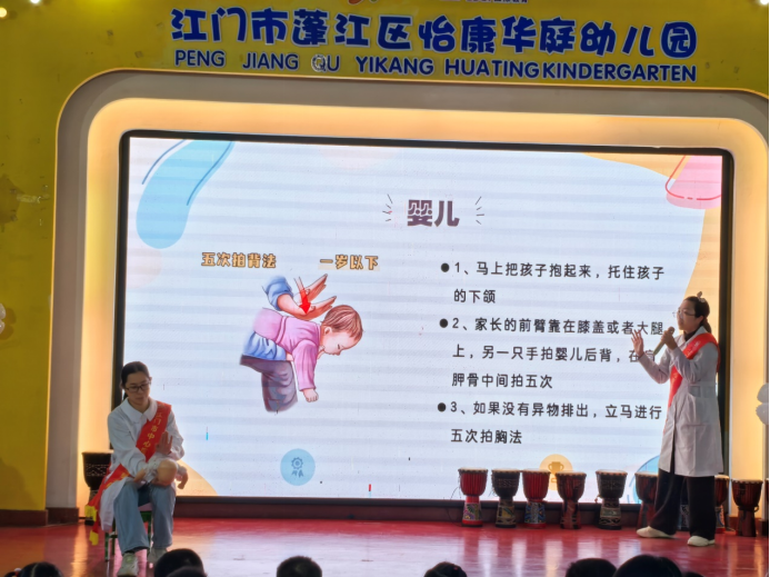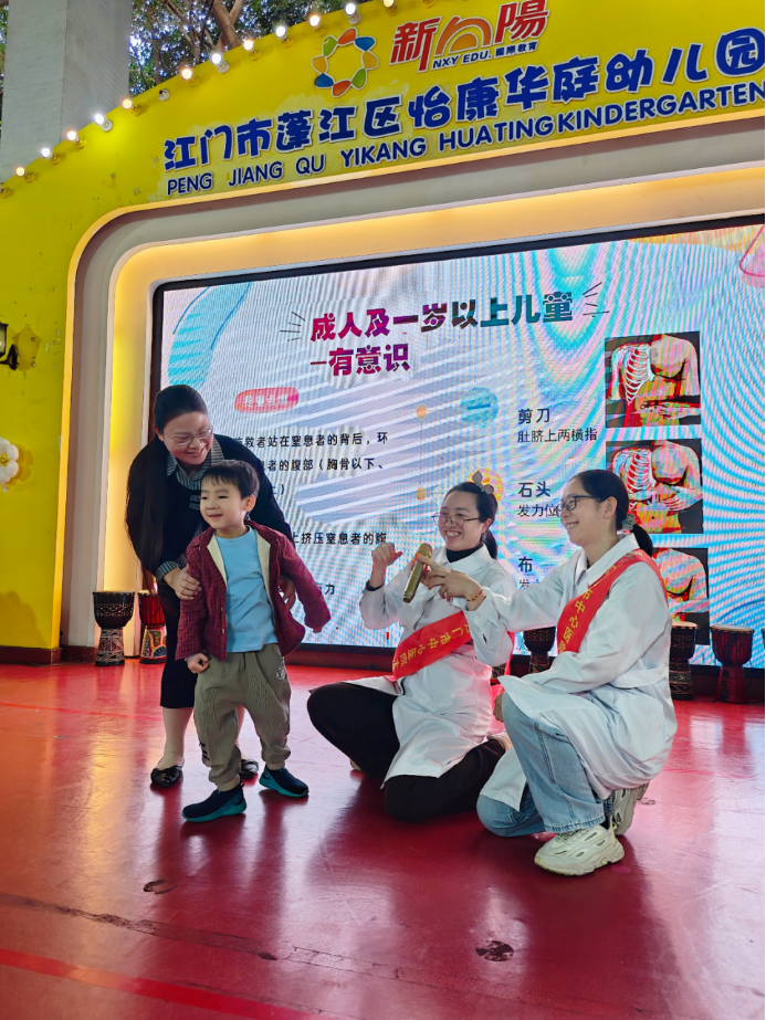 活动伊始,支部党员张德明以一场生动有趣、互动性强的海姆立克急救法科普讲解拉开了序幕。面对孩子们好奇的目光,德德老师用浅显易懂的语言和形象生动的演示,将关键时刻能救命的急救技能娓娓道来。孩子们踊跃举手、积极应答,在轻松愉快的氛围中掌握了呼救、识别危险和寻求帮助的基本意识。随后的情景模拟环节,家长与孩子共同参与实操演练,使急救知识真正入脑入心。一位家长现场感慨:“这场活动太及时、太实用了,让我们和孩子都学到了守护生命的宝贵技能。”
