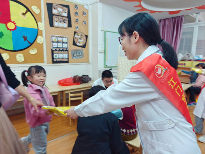 活动现场,由支部党员李淑瑶带领的护理团队同样忙碌而有序。梁淑敏、梁彩玲、张德明、王基运等党员及骨干护士们,热情地为家长提供健康咨询,发放儿童健康宣传手册,并送上精心准备的小礼物。色彩鲜艳的绘本、实用有趣的健康包,不仅让孩子们笑逐颜开,更将健康生活的理念悄然播撒进他们心中。