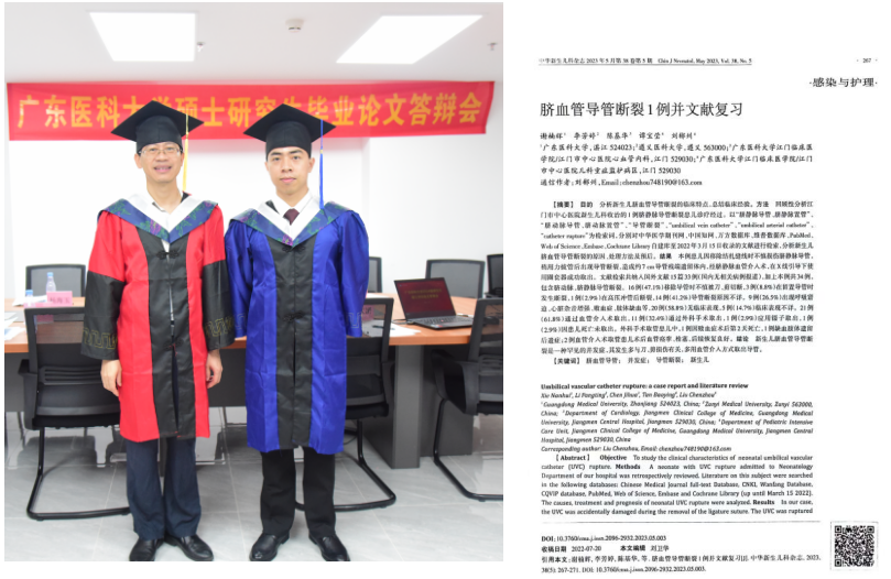 2023年在中华新生儿科杂志发表论文“脐血管导管断裂1例并文献复习”。