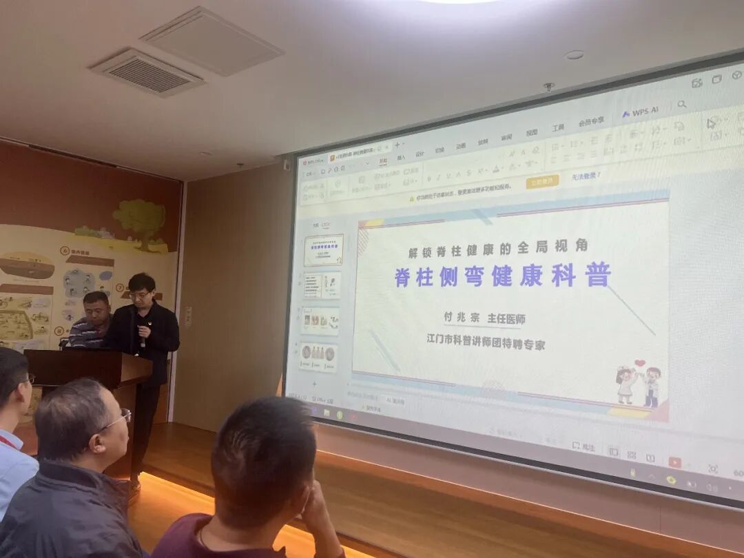付兆宗同志则围绕《脊柱侧弯健康科普》,为大家演示日常姿势矫正与脊柱养护小技巧。