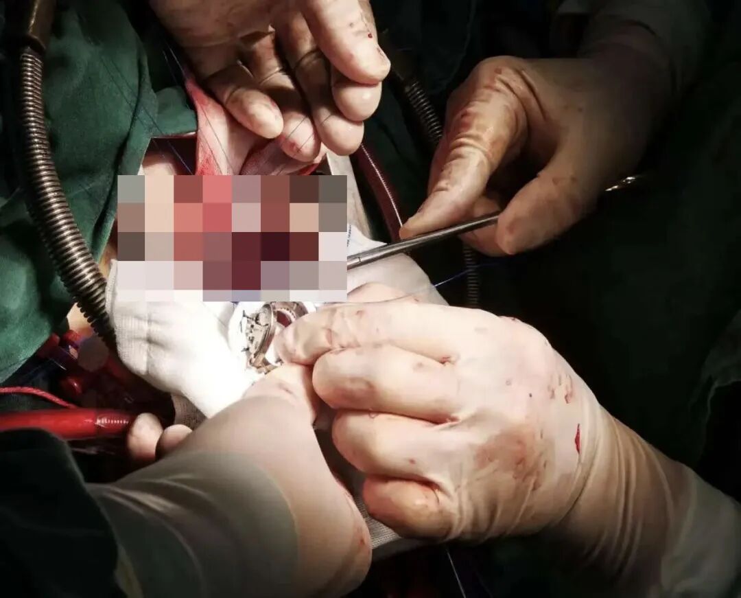 面对患儿受限的胸腔容积及既往VA-ECMO支持下的复杂状况,心外科团队直面挑战,联合麻醉、体外循环、重症监护及超声等多学科团队,进行了周密的手术规划与预案。此时,12个科室的20余名医护人员已全部到位,各司其职、严阵以待。术中,团队精准操作,经胸骨正中切口入路,在体外循环心脏停跳下,于左心室心尖部定位最佳植入点,穿针置线、放环固定,紧接着在心尖处打孔植入“人工心”——这也是本次手术最关键的环节。4小时的手术期间,麻醉及体外循环团队全程精准调控生命体征,输血科及时提供血液支持……各科室无缝衔接、密切配合,这场与死神“掰手腕”的攻坚战,最终以成功告终。