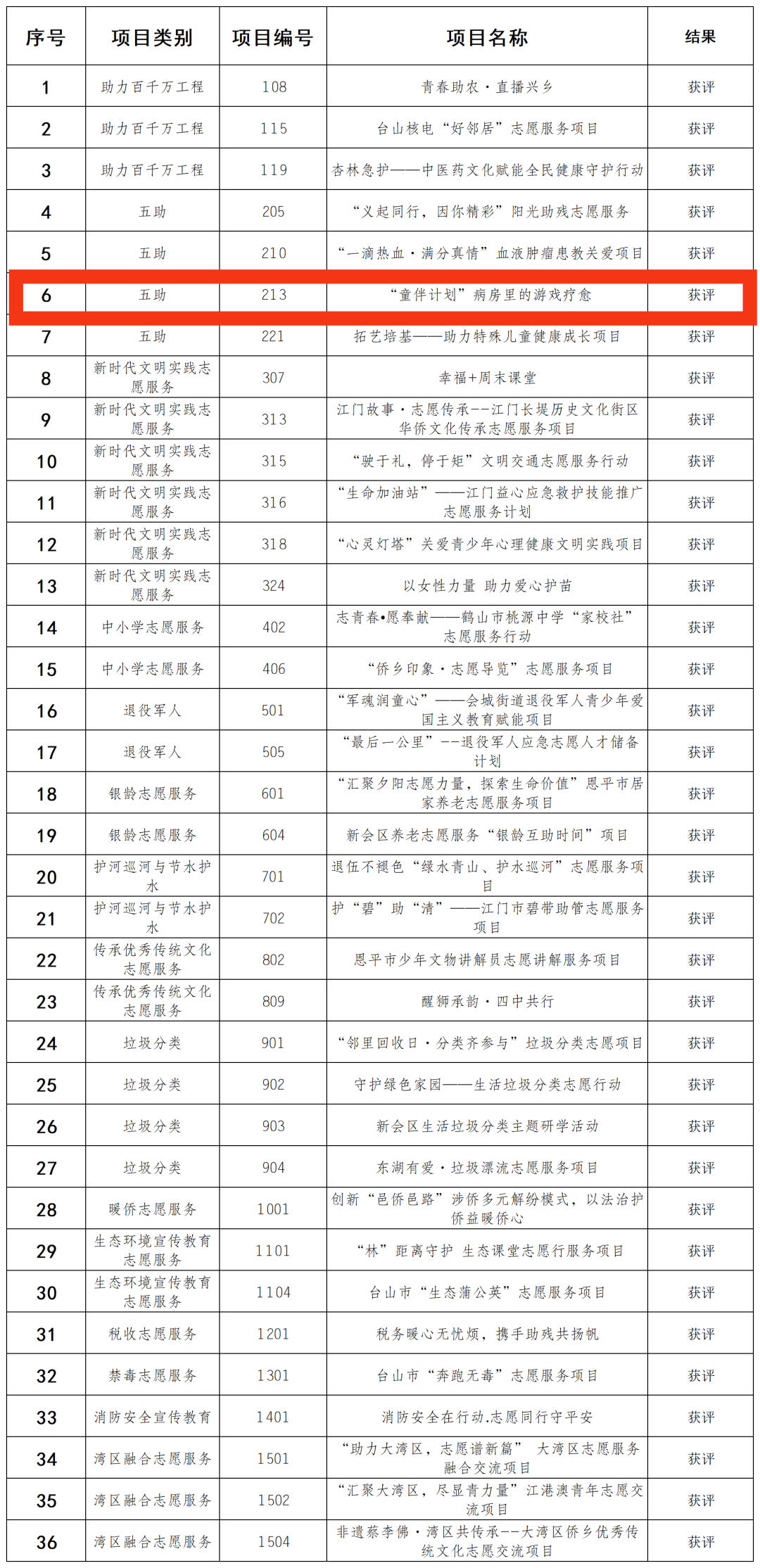 此次获评江门市重点培育项目,是对《“童伴计划”病房里的游戏疗愈》项目的高度肯定和鼓励。项目团队将以此次获评为契机,进一步优化项目服务设计,强化需求导向,增强成效展示,为更多病房中的孩子带来温暖与希望。