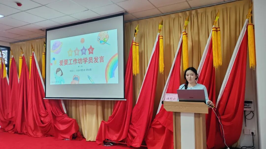 爱婴工作坊作为产科党支部的党建品牌,也是江门市义工服务的优秀项目,自2014年创办以来已走过了12个年头。活动中,爱婴工作坊培训组教师代表谭彩云回顾了这12年来的发展历程,从最初的探索到如今的硕果累累,全面讲解了爱婴工作坊的组织定位、服务宗旨。她表示,本届实习同学参与的志愿服务内容与成果汇总,生动展现了第12届学员在工作坊中的成长与付出。优秀学员代表蔡绿霞登台分享结业心得,结合自身在爱婴工作坊服务中的亲身经历,讲述了从理论学习到临床实践的蜕变,真挚的感悟引发了在场师生的共鸣。