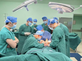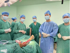 在3D打印的金属假体完成后,吴大爷再次入院。2025年12月周翔教授再次亲临我院指导手术,经过掀起原移植的皮瓣,取出临时植入的骨水泥及固定的钢板,在胫骨远近端进行精准截骨,顺利安装好3D打印的胫骨金属假体。不到2小时,即按术前规划成功完成了这个“私人定制”式的手术。