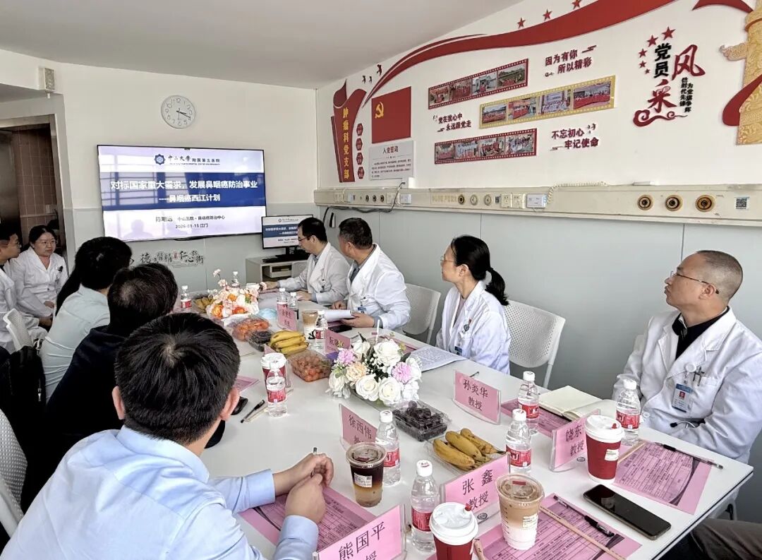 为深入贯彻新时代党的建设总要求,探索党建引领业务高质量发展的新路径,近日,中山大学第五附属医院鼻咽癌防治中心教职工党支部、放射肿瘤科教职工党支部与江门市中心医院肿瘤科党支部联合在江门市中心医院肿瘤中心鼻咽头颈病区会议室举办了一场主题鲜明、内容扎实的党建科研业务交流活动。本次活动聚焦提升区域肿瘤防治能力,特别是鼻咽癌等头颈肿瘤的诊疗水平,旨在通过党组织间的互联互通,推动临床技术共享、科研协作与党建业务深度融合。