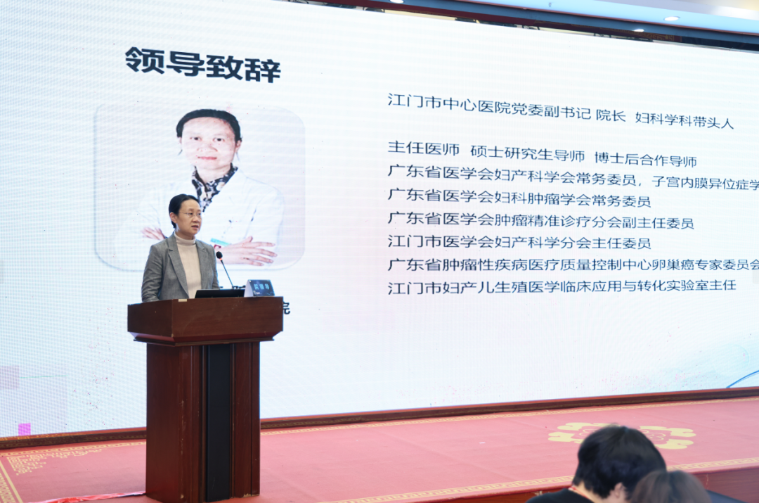 会议伊始,江门市中心医院党委副书记、院长阮晓红致辞。她代表医院,向参会的专家同仁致以热烈欢迎,并对本次大会的召开表示祝贺。