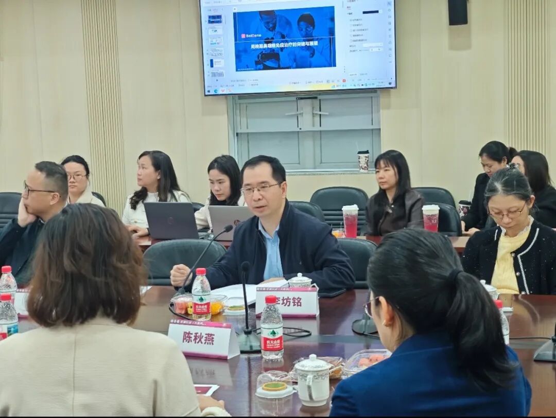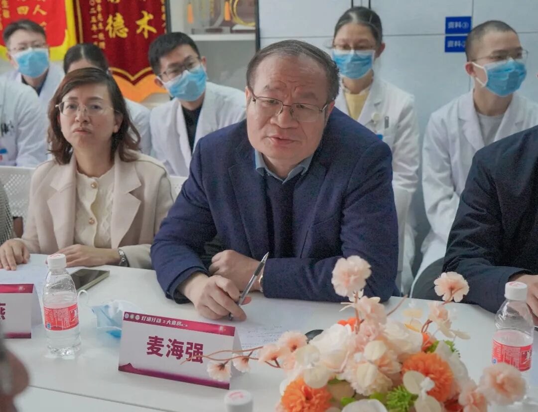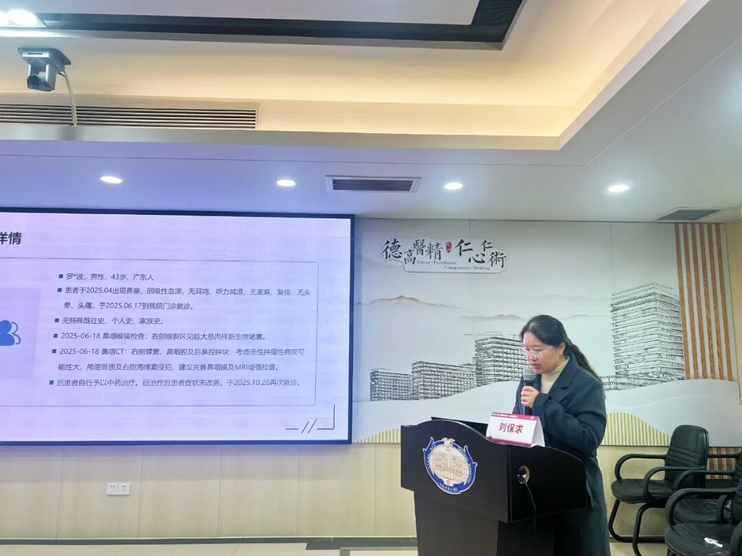 江门市中心医院党委副书记、院长阮晓红对中山大学肿瘤防治中心院长助理、鼻咽科党总支部书记、科主任麦海强教授一行表示热烈欢迎。她指出,希望以党建共建为契机,进一步深化两院在鼻咽癌精准治疗、学科建设、科研合作与人才培养等方面的联动,提升区域鼻咽癌综合诊治能力,使优质医疗资源更好惠及地方患者。麦海强教授充分肯定江门市中心医院在鼻咽癌诊疗方面取得的成效,并强调双方具有良好的合作基础,未来可在多中心临床研究、技术规范化推广、党建与学科双融双促等方面建立长效机制。△中山大学肿瘤防治中心院长助理、鼻咽科党总支部书记、科主任麦海强发言。△江门市中心医院肿瘤科党支部书记、肿瘤中心副主任、鼻咽头颈肿瘤病区负责人李坊铭发言。麦海强教授团队深入江门市中心医院鼻咽头颈肿瘤病区病房,联合开展鼻咽癌专科大查房。针对局部复发和局部晚期伴有多种基础疾病的两列鼻咽癌疑难病例,双方围绕NCCN指南本土化应用、放疗时机与靶区优化、免疫维持治疗周期、化疗方案选择及个体化剂量调整等议题展开深入讨论。结合患者具体情况,专家团队从器官功能保护、治疗耐受性、系统治疗策略、放疗介入时机、毒性管控等维度进行综合评估,制定“一人一策”的精准治疗策略。在我院肿瘤科党支部书记、肿瘤中心副主任、鼻咽头颈肿瘤病区负责人李坊铭的陪同下,麦海强教授一行参观了江门市中心医院江门市中心医院院史长廊,了解医院百年发展历程及在医疗、教学、科研方面的积淀。随后,麦海强教授作《鼻咽科党支部建设助力学科发展》专题报告,系统介绍“党建+科研”“党建+医疗服务”“党建+人才培养”三维融合机制:通过设立党员科研先锋岗,推动鼻咽癌分子分型等前沿研究;构建“医患共治”服务体系,提升诊疗人文温度;依托“微‘i’服务队”及“国家级青年文明号”平台,促进青年医护成长与团队建设。鼻咽癌诊疗前沿与临床经验分享在学术交流环节,会议由中山大学肿瘤防治中心麦海强教授、吕星教授与江门市中心医院李坊铭教授、张钦华教授共同主持。中山大学肿瘤防治中心鼻咽科陈秋燕教授作《鼻咽癌患者体重管理》报告,解读基于患者放疗体重变化个体化管理策略及临床研究。中山大学肿瘤防治中心鼻咽科刘赛兰教授分享《局部晚期鼻咽癌免疫治疗的现状与展望》,探讨疗效优化路径;中山大学肿瘤防治中心鼻咽科刘丽婷教授与江门市中心医院鼻咽头颈肿瘤病区刘保求教授分别通过典型案例,介绍双方在疑难鼻咽癌综合治疗方面的实践经验及相关临床研究进展。讨论环节聚焦“放疗减毒增效”“靶区勾画优化”“晚期鼻咽癌综合治疗分层施策”等临床难点,展开跨院深度对话。江门市中心医院医院肿瘤中心鼻咽头颈肿瘤病区是以治疗鼻咽头颈部肿瘤为主的放射治疗与肿瘤内科治疗(化疗、免疫治疗、靶向治疗等)综合治疗的病区。鼻咽癌、头颈部肿瘤是临床中最常见的恶性肿瘤之一,其中鼻咽癌在五邑地区一直是高发区,放射治疗是其最主要的治疗手段,也是该病唯一能治愈的治疗方法;大量的临床研究与实践表明,对于早期头颈部恶性肿瘤,我科采取的放射治疗可以取得与手术相同的治疗效果,同时又能很好地保留患者的功能与结构完整,例如喉癌、口腔癌、口咽癌、下咽癌、头颈部皮肤癌等。对于中晚期头颈部恶性肿瘤,该科通过与肿瘤外科、影像科、病理科等组成的鼻咽癌、头颈肿瘤MDT团队开展定期病例讨论,制定治疗方案,通过手术、化疗、免疫治疗及靶向治疗等治疗手段配合,大大提高了中晚期恶性肿瘤的局部控制率与生存率。晚期头颈部恶性肿瘤,特别是老年、合并基础疾病的患者,其他治疗方法难以实施,该科以放射治疗、肿瘤内科治疗等为姑息治疗手段,起到很好的减轻症状、缓解疼痛、恢复功能的作用。▎高精尖技术我院引进的具有图像引导三维适形调强(IGRT)功能的瓦里安直线加速器、调强放射治疗技术(IMRT)及立体定向放射治疗技术(SBRT)已经投入应用多年,这是目前最先进的放射治疗设备及技术。该项设备的应用使我院放射治疗技术达到省内领先水平,通过IMRT技术可以大大提高放疗的精确性,提高肿瘤的治愈率,同时更好地保护正常组织与器官。因头颈部内部器官与组织运动较少,患者摆位重复性好,精细结构与功能更需要保护,所以头颈部恶性肿瘤尤其适用于IMRT治疗,IGRT为IMRT的精确实施提供了有力的保障。随着该设备与技术的逐渐应用与推广,将更好地造福于头颈部恶性肿瘤患者。
