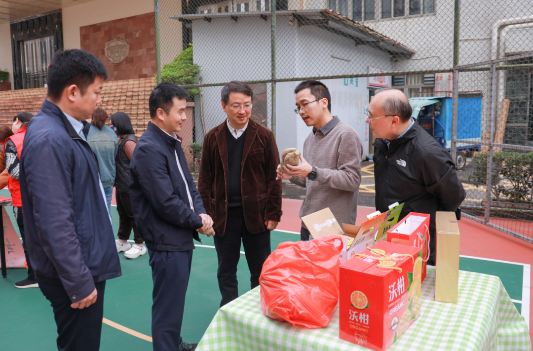 本次活动特设纵向帮扶助农产品展销区,团江门市委书记李金元在医院党委副书记张品的陪同下现场向青年驻村干部郑文俊细致了解鹤山市双合镇特色农产品的品类、产销等相关情况,对医院以新春活动为载体开展助农展销、推动“百千万工程”、助力乡村振兴的举措予以肯定。展销区内集中展示了鹤山红茶、双合粉葛、土鸡蛋、沃柑、葛粉、蕉芋粉等双合镇特色农产品,每一件展品都承载着农户的辛勤耕耘与美好希望。通过“现场展销+‘双合优品’线上演示”的形式,既有效帮助农户拓宽了线上线下销售渠道,更进一步激发了社会各界参与乡村振兴的热情,凝聚起同心助力乡村发展的暖心力量。