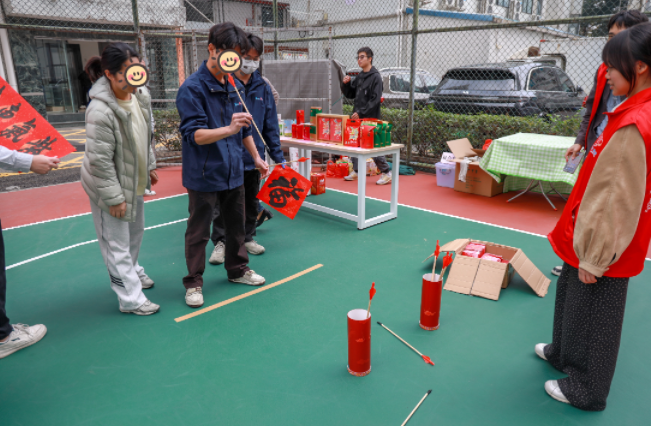 为了让现场气氛更加热烈,活动还安排了“投壶迎安康”的互动游戏。参与者手持箭矢,投掷入壶,不仅增添了活动的趣味性,还让大家在轻松愉快的氛围中感受到了新春的喜悦。