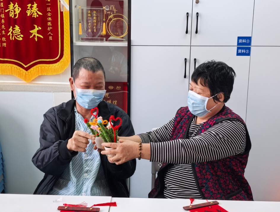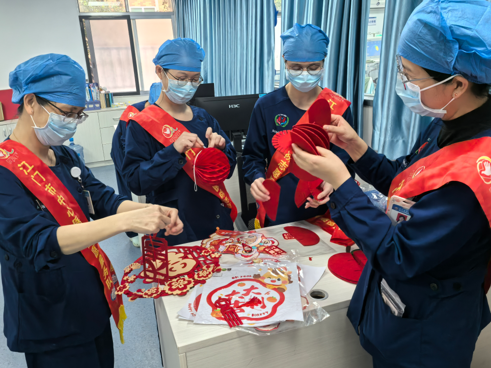医院里,每一抹红色都点缀着节日的喜庆氛围;每一盏灯笼都寄托着对患者早日康复的期盼;每一张福字都传递着辞旧迎新的美好祝愿。院团委精心筹备,为各科室准备了琳琅满目的喜庆装饰品。123个集体同时行动,493名医护人员化身志愿者,用双手为日夜奋战的“战场”披上节日的盛装。病房、走廊、护士站,每一个角落都被装点得焕然一新,洋溢着家的温暖。这不仅驱散了病痛给患者带来的阴霾,也让坚守岗位的医护人员在忙碌中感受到了节日的祝福与力量。医务社工项目组联合神经内科、神经外科、血液内科、妇科、乳腺诊疗中心、肿瘤中心和儿内科七个科室以“文化疗愈+健康赋能”为核心,策划了系列主题病友会活动,将传统年俗及疾病管理知识巧妙结合,让患者在欢乐中收获健康。神经内科医护人员用通俗易懂的语言,向患者及家属讲解脑卒中预防、饮食注意事项等实用知识,重点分享了新春期间的养生要点,提醒大家合理膳食、规律作息,守护自身健康。把科学守护送到大家身边,为新春安康筑牢基础。神经外科医护人员为每位参加者发放了一本《高血压脑出血健康饮食指南》,结合指南内容开启新年科学饮食的话题,引导患者通过食材搭配和烹饪方式调整,在享受年味美食的同时控制血压;医务社工带领患者进行手指操训练,促进手部灵活性恢复。