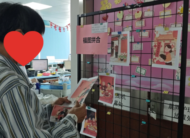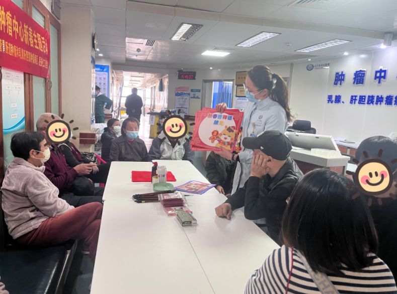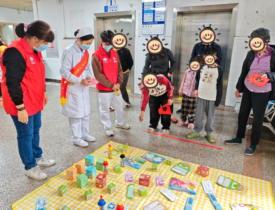 肿瘤中心鼻咽头颈肿瘤病区用“四道人生”——道爱、道谢、道歉、道别,搭建起一座通往心灵深处的桥梁。患者在卡片上写下对医护人员的感谢、对病友的鼓励、对自己的肯定,每一张卡片都承载着最真挚的情感。医务社工用仙人掌做隐喻,鼓励患者们像仙人掌一样,在逆境中顽强生长,绽放生命的力量。在肿瘤中心肺部肿瘤病区、妇科泌尿肿瘤淋巴瘤病区,医务社工借助趣味问答的方式,列举住院患者常遇到的问题,并细致解说各项服务内容,协助患者家庭更清楚地了解各类求助途径,为打造可持续的支持网络奠定了基础。在肿瘤中心乳腺肝胆胰肿瘤病区、食管胃肠道肿瘤病区,医务社工为患者开展“新春暖忆”故事分享会,鼓励患者分享新春故事,聊聊岁月里的温暖与感动。参与者在分享与倾听中,相互慰藉、彼此鼓励,找到心灵共鸣,感受同伴温暖,重拾对生活的热爱与期待。 医务社工项目组联合儿内科以童心为桥、以年俗为媒,开展“萌娃闹新春,拓福迎新年”新春活动。患儿在家长的陪伴下参与猜习俗、拓福、套圈圈等游戏,在病房里感受浓浓的年味,收获健康与快乐!新春的温暖,藏在每一次欢笑里;成长的勇气,藏在每一次挑战中。愿患儿都能早日康复,带着满满的祝福迎接崭新的一年。医务社工为血液病友精心准备了系列新春互动游戏,福球传接、福图拼合、福梅共绘等游戏区都围满了跃跃欲试的患者和家属。在“福球传接”区,寓意美好的福球在患者间传递;“福图拼合”区,患者齐心拼出吉祥图案;“福梅共绘”区,医护志愿者协助患者作画,梅花在笔下绽放,寄托着大家对新春与健康的期盼。现场喝彩、欢笑、鼓励声不断,患者忘却病痛,沉浸在节日欢乐中。医务社工联合乳腺诊疗中心、妇科一区和二区,在社会爱心组织的支持下,通过趣味互动、手工制作和暖心慰问等形式,为患者及家属送去新春祝福,更用陪伴与关爱,为她们的康复之路注入了信心与勇气。在本次新春活动的互动中,医护人员不再仅仅是穿着白大褂的治疗者,更是传递温暖的陪伴者;患者也不再只是被动接受治疗的个体,而是积极参与、共同营造希望的伙伴。当医护人员手把手教患者拓印福字,当患者为医护人员送上亲手绘制的梅花图,当彼此在游戏中开怀大笑、在分享中热泪盈眶,一种超越了医患关系的深厚情谊在悄然生长。这种情谊,是面对疾病时的相互鼓励,是战胜病痛时的共同喜悦,是在特殊环境下凝聚起的强大合力。