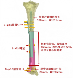 △3D打印定制式胫骨金属假体(可拆分)。