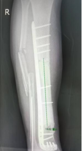 不过,吴大爷的第一次出院只是阶段性胜利——手术植入的骨水泥仅为临时填充,无法承重,其胫骨仍遗留约16cm大段缺损,必须通过二次手术修复,才能真正恢复行走能力。