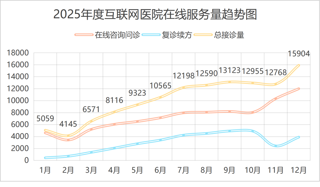 自江门市中心医院互联网医院线上服务升级以来,在线接诊服务量显著提升,越来越多的患者享受到了在线咨询问诊、复诊续方的便捷,2025年全年我院已为超过12万人次患者提供线上诊疗服务。