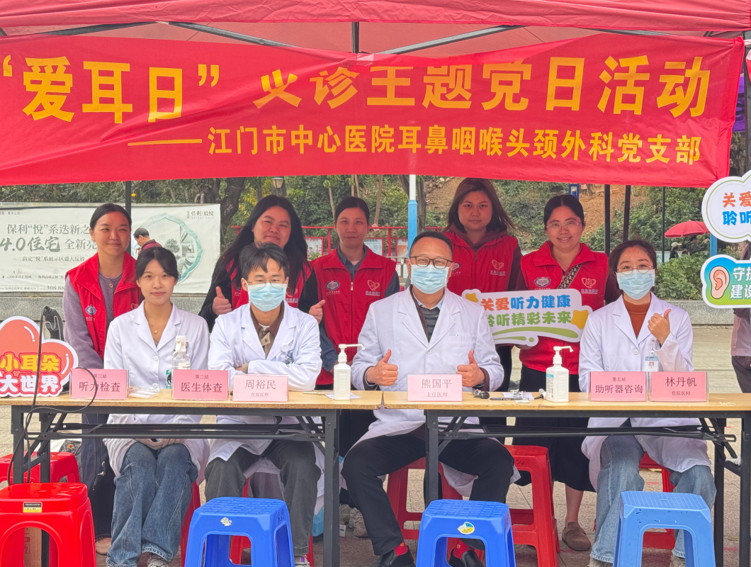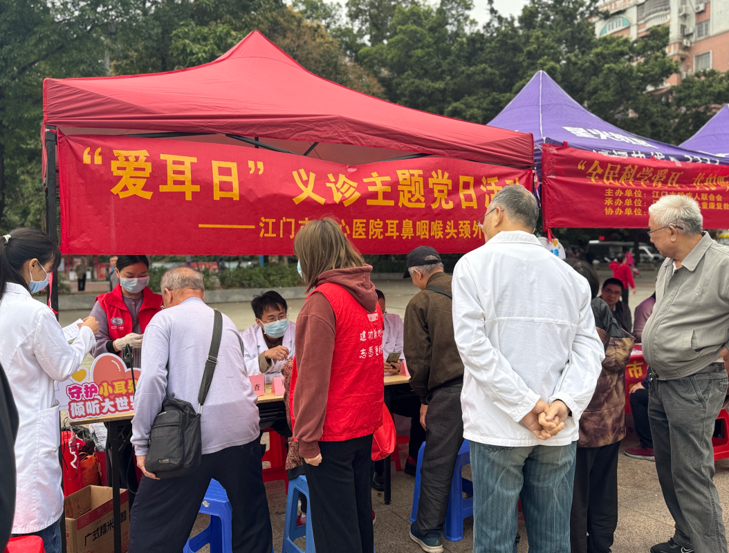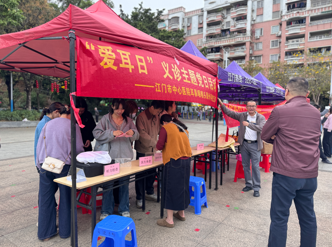 3月3日活动当天,江门市中心医院耳鼻咽喉头颈外科党支部、耳鼻咽喉头颈外科青年文明号及外科一团支部,联合江门市残疾人联合会、江门市特殊儿童康复教育中心、蓬江区残疾人联合会,在蓬江区育德社区共同开展了一场别开生面的全国爱耳日主题公益活动。从血压测量到听力筛查,从专家义诊到政策咨询,多个服务项目有序推进,为社区居民送上了一份贴心的“健康礼包”。