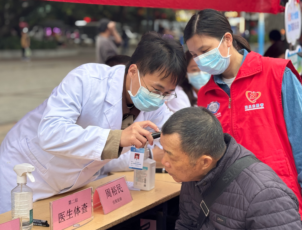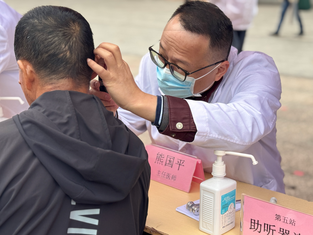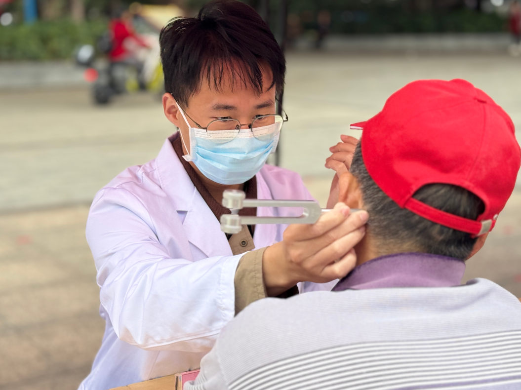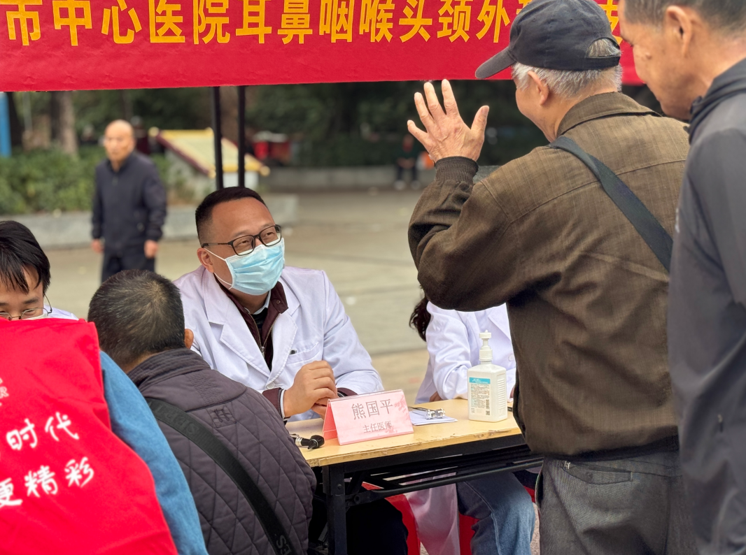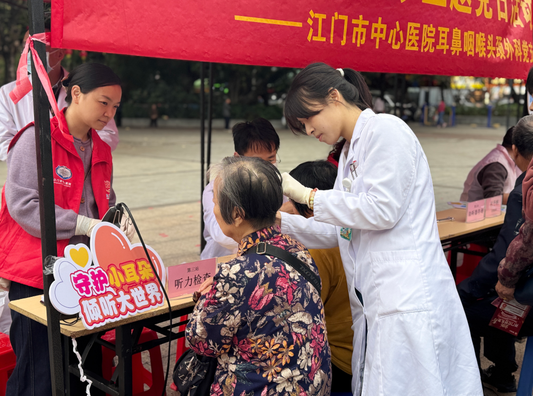 2.专家义诊区:江门市中心医院耳鼻咽喉头颈外科党支部书记熊国平带领专家团队坐诊,针对居民提出的耳鸣、耳痛、听力下降等问题一一解答。“医生,我最近耳朵总是嗡嗡响,晚上睡不好。”一位中年女士担忧地说。熊国平仔细检查后,建议她进一步听力评估,并开具了针对性的调理方案。