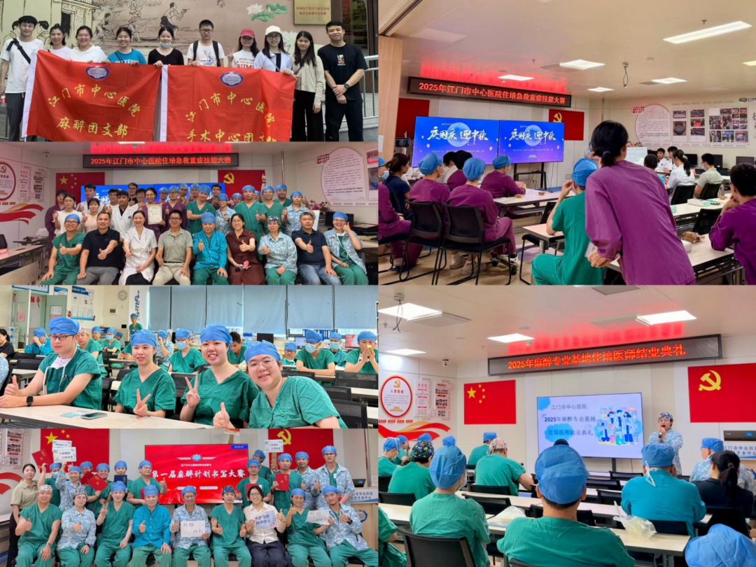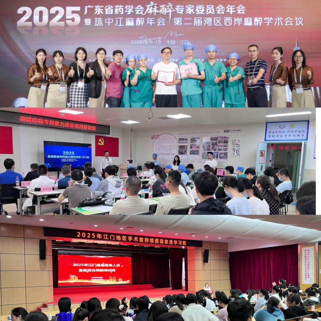 作为江门市市级重点专科及五邑地区唯一的麻醉专业住培基地,本中心同时是广东医科大学、潍坊医学院、包头医学院、牡丹江医学院等近十所院校的实习基地,担任着实习生与住培生培养、在职人员继续教育的重任。在国家七部委发文之前,基地已率先开展麻醉护理大专班大学联合教育,并承担江门中医药职业学院麻醉护理专业在校教学工作。每周定期组织针对实习生、护理学生及住培医师的理论授课和病例讨论,确保教学与实践紧密结合。作为医教研一体化的科室,本中心还承担了数十项科研立项工作。2023年至今,科室共获得江门市科技局立项21项,参与临床试验多中心3项,主持横向基金8项、主持院内杰青1项,并参与广东省自然面上项目1项。此外,科室主持广东省适宜技术推广项目6项、新型专利3项,发表SCI论文12篇。2024年,科室成功立项江门地区首个麻醉专业GCP项目。