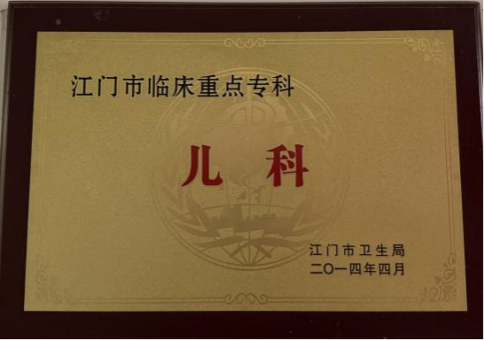 江门市中心医院儿科是江门市重点专科、江门市急危重新生儿救治中心、江门市儿科危重症救治中心、广东省儿童肾脏风湿病专科联盟委员单位、江门市呼吸疾病研究所儿科基地,儿童青少年肥胖与生长发育科普基地、港深澳儿科过敏联盟单位、江门市医学会儿科分会主委单位、江门市重点实验室(妇产儿)、江门市新生儿先天性心脏病诊断机构。承担江门地区及周边儿童常见病、罕见病的诊疗及危重儿童、新生儿的转运与救治,总床位数超100张,年收治患儿约4000人次,年门急诊量超30万人次。
