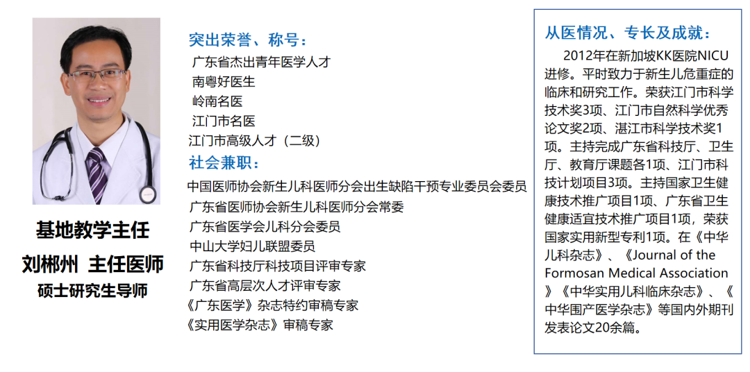 谢楠辉:2021级学员,广东医科大学并轨研究生,2024年毕业后就职于江门市中心医院NICU。(导师:刘郴州主任医师)